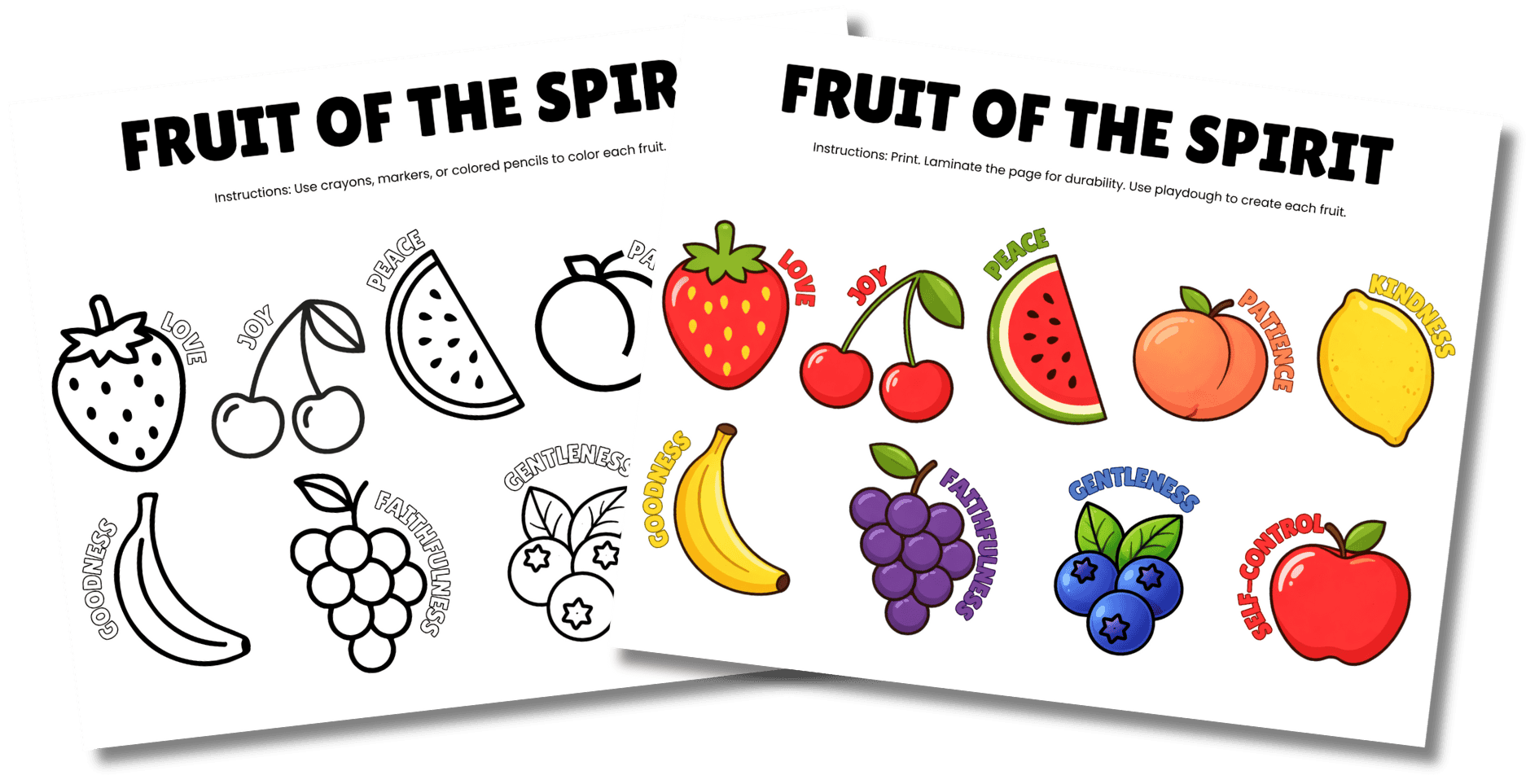 Make your Fruit of the Spirit lesson hands-on with this FREE printable set that includes a playdough mat and a bonus coloring page—two activities in one.