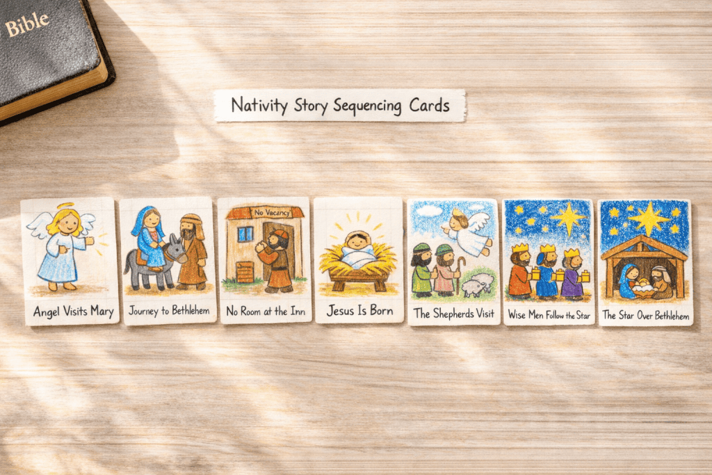 The Nativity Story Sequencing Cards help children understand the birth of Jesus as a purposeful series of events. This craft supports comprehension by allowing children to place the story in clear order.