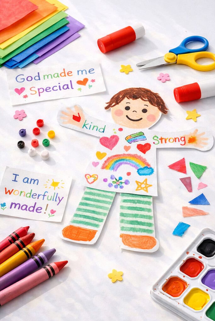 This is such a powerful self-worth and identity builder for children, rooting their confidence in their Creator rather than in comparison. It’s also a fantastic complement to Days of Creation crafts for kids.