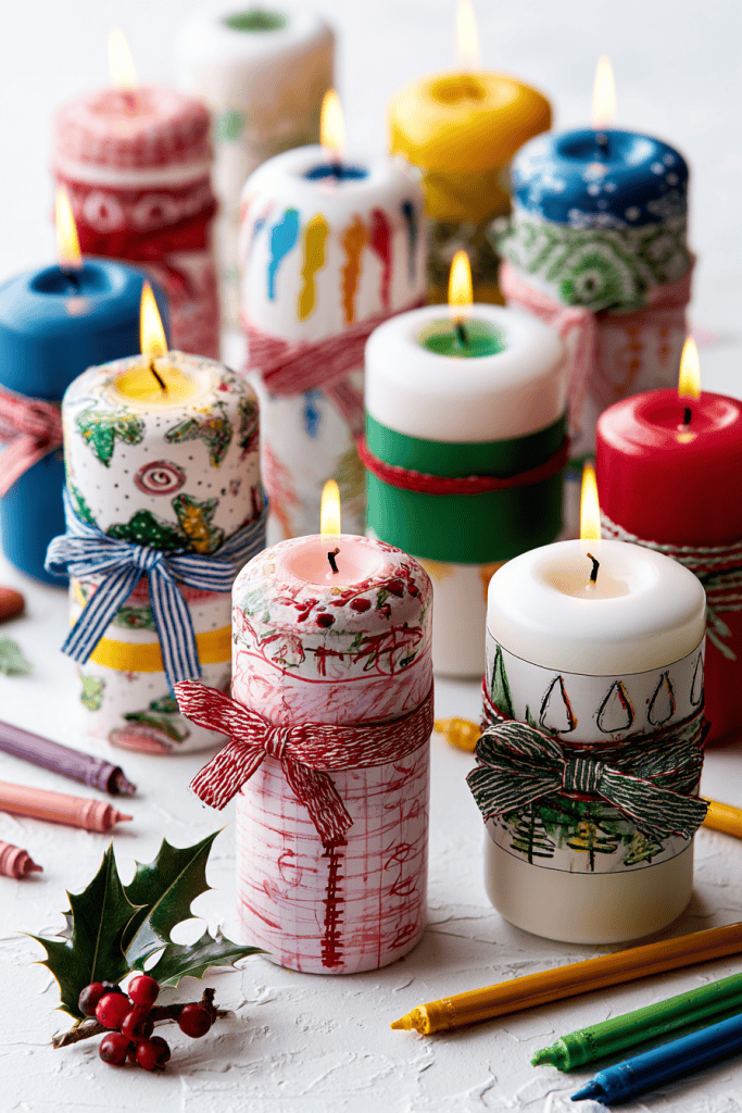 Kids can wrap them in decorative paper bands, tie on ribbons, or create melted-crayon designs for a colorful effect.