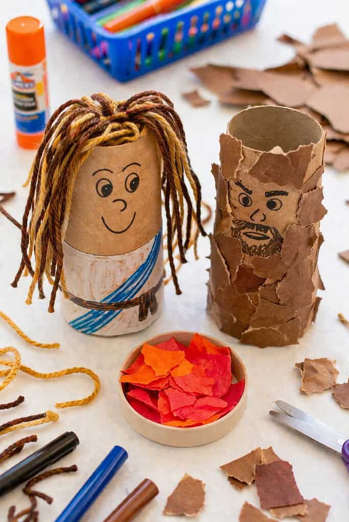 Use two toilet paper rolls to make the brothers — color them differently, add yarn for Jacob and brown paper for Esau’s “hairy” look. Talk about the bowl of stew, birthright, and how God’s plan moves forward even through our mess.