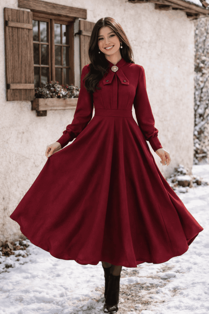 Worn with flats or ankle boots, this dress feels steady and timeless.