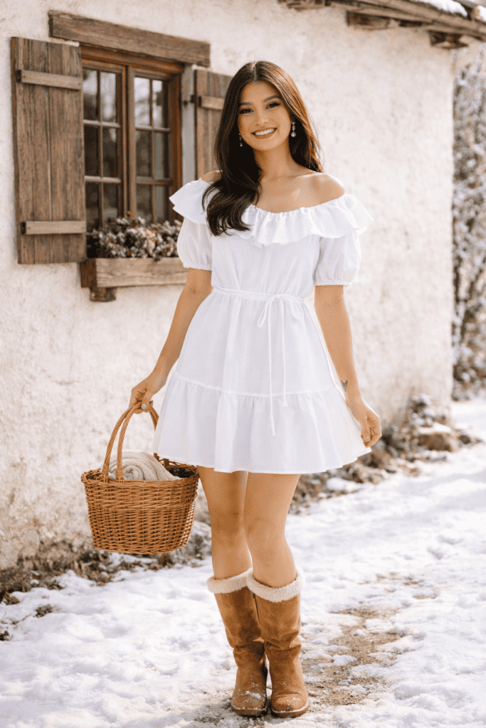 Paired with boots, the outfit becomes both practical and stylish.