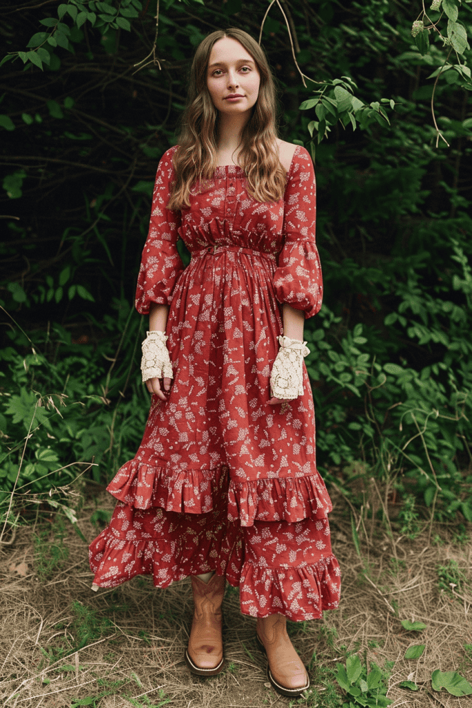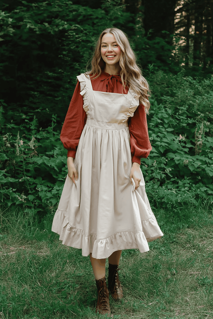 This combination reflects the blend of beauty and practicality that defines cottagecore dressing.