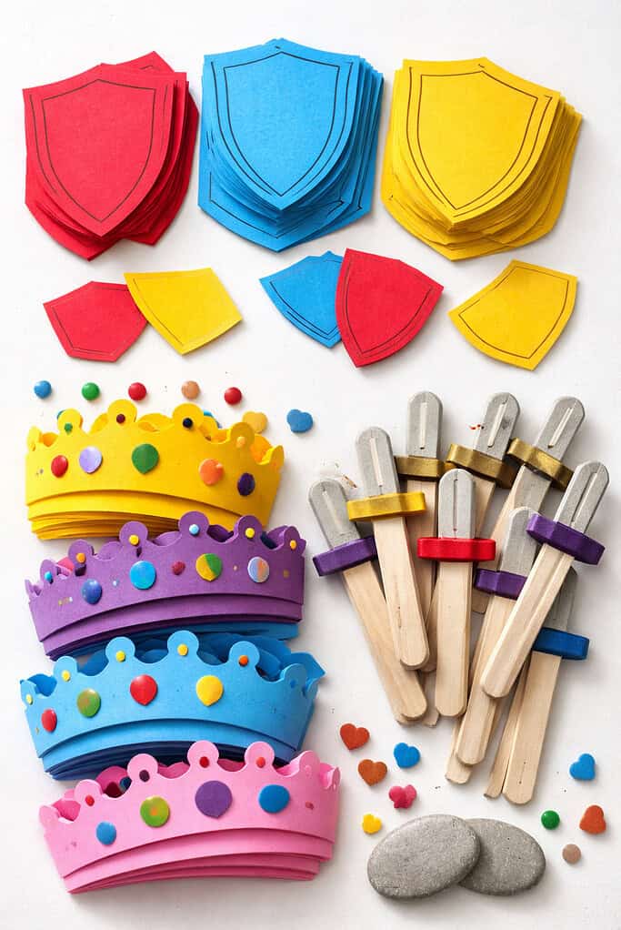 The smooth stones can be collected from your backyard or a local park. If you’re working with a tighter budget, the coloring activity and the paper crown and warrior headband are your most supply-light options.