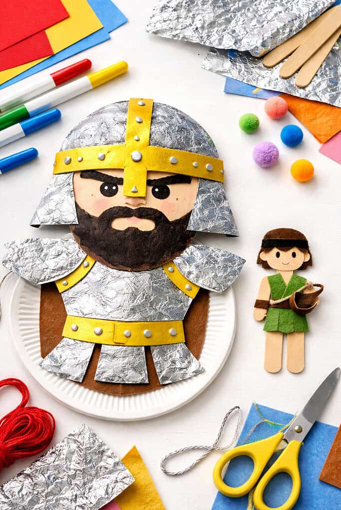 Here’s your go-to list of David and Goliath craft ideas – from simple paper plate projects to hands-on sensory activities. Each one is beginner-friendly, budget-conscious, and full of storytelling potential.