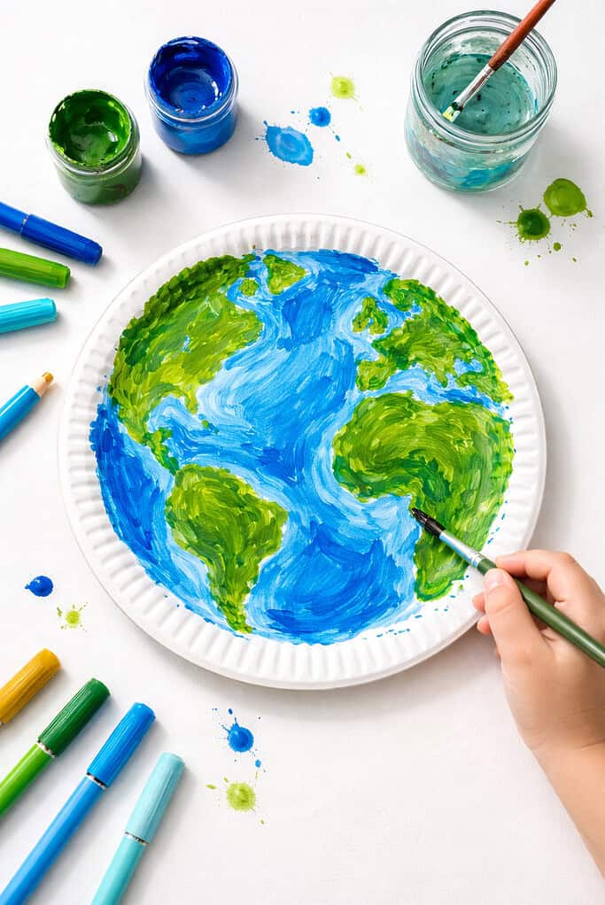 Kids paint the plate to look like a globe — swirling blues for the oceans, green blobs for the continents — and the result is always proudly displayed on the fridge. It’s a wonderful conversation starter about what the Earth looks like from space and why every little patch of land and water matters.