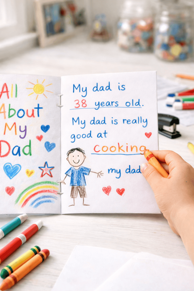 Encourage them to present it in their own words, whether that’s a full speech or just a quiet “I made this for you, Dad.” Add a handwritten card or letter, even for very young children. You can write what they dictate, word for word, and it becomes a snapshot of who they were at that exact age.