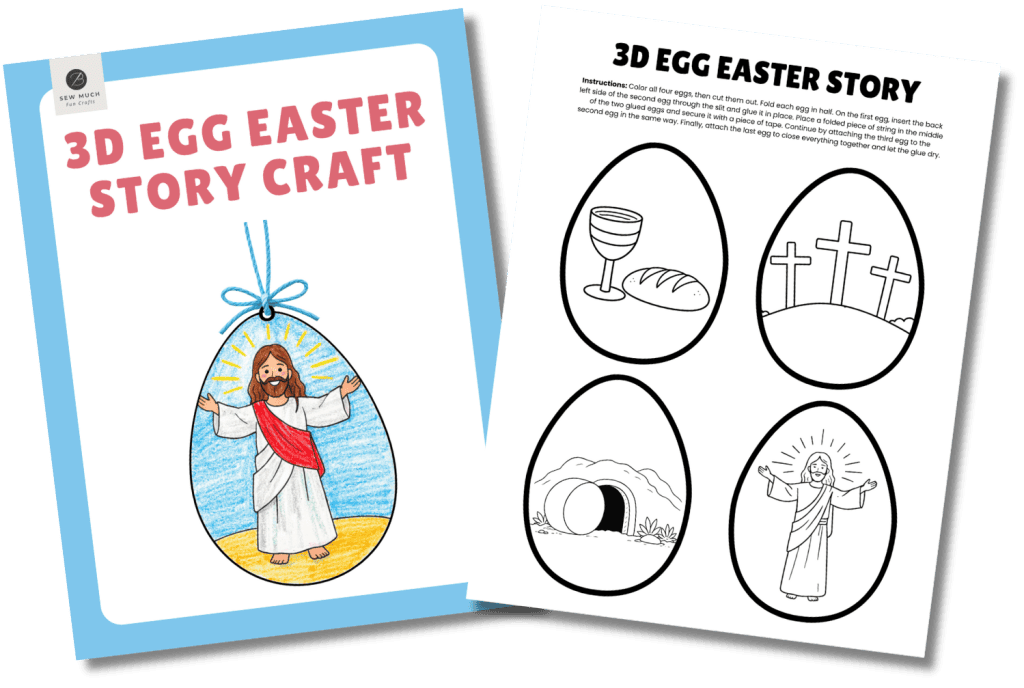 The Easter Egg Craft has kids color four eggs and fold them into a 3D keepsake, walking through the story from the Last Supper to Jesus rising again. The Easter Tomb Craft features a colorable tomb with doors that open and close to reveal the risen Savior inside.