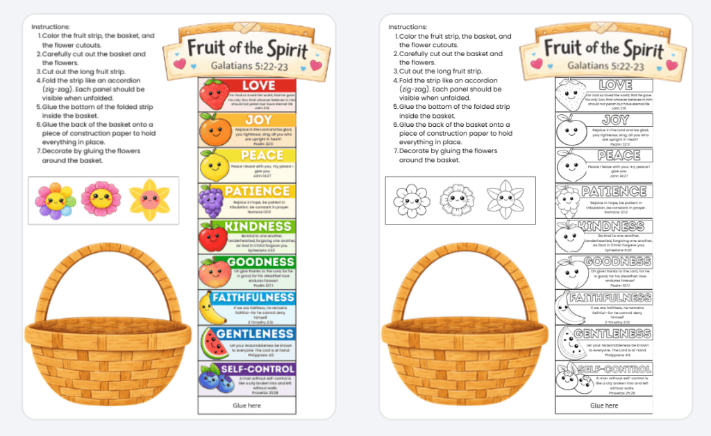 What Is Included in the Fruit of the Spirit Basket Craft Printable?