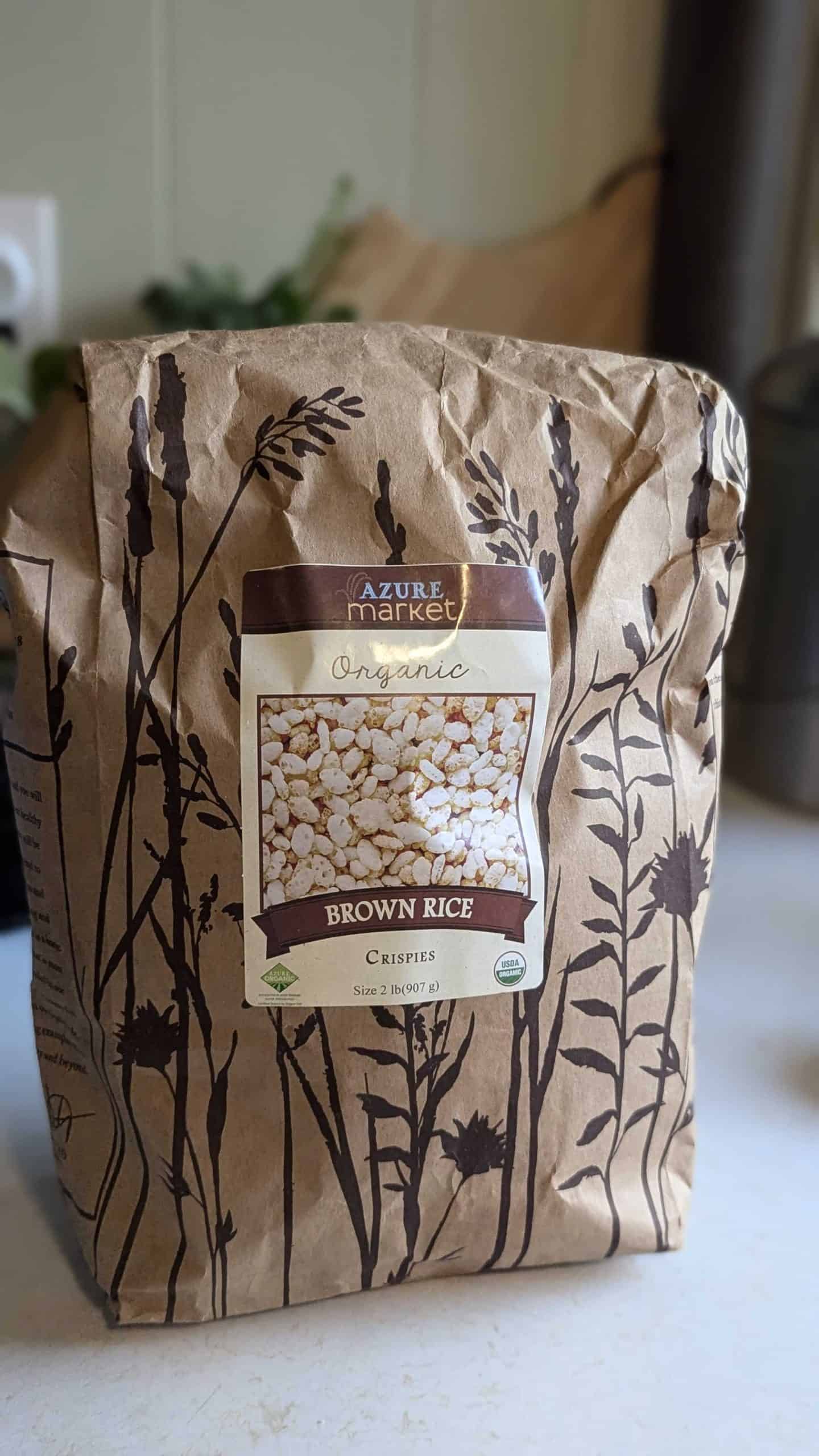 - 5 cups brown rice crispies (I used Azure Standard Organic Brown Rice Crispies)