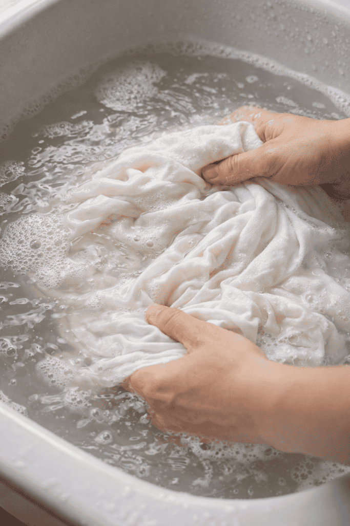 If you’re hand washing, let it soak for a few minutes in cool water with a bit of mild detergent, then rinse well.