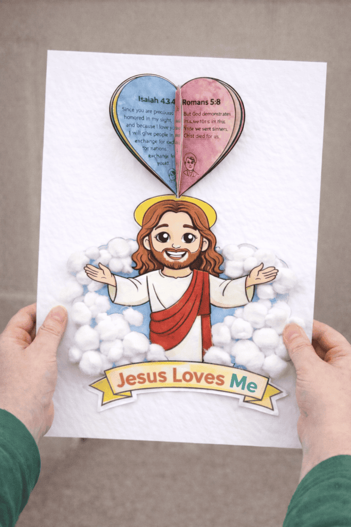 This FREE Jesus Loves Me Printable uses a “What does the Bible say?” approach with familiar verses, simple language, and hands-on fun.