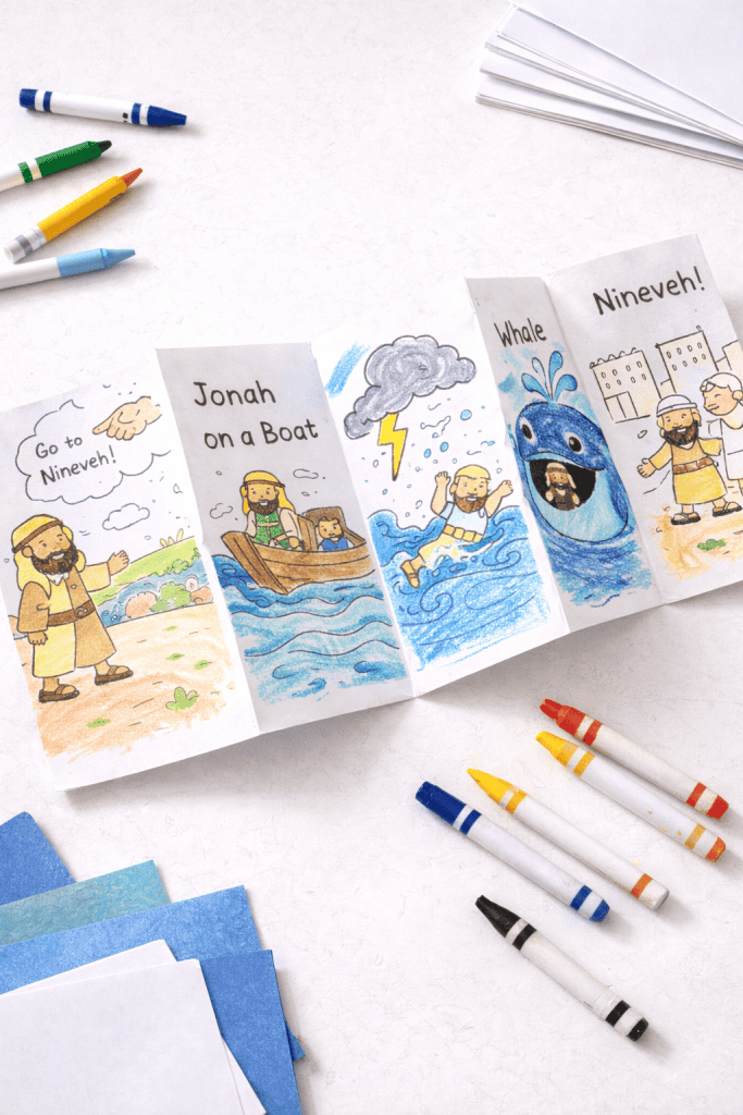 While crafting, weave in thoughtful questions: “How do you think Jonah felt inside the whale? Have you ever felt like you wanted to run away from something?” After finishing, have kids explain their craft to someone else – this retelling cements the lesson beautifully.