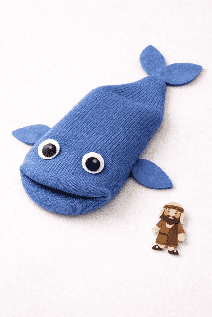 Got an old blue or gray sock hanging around? Don’t throw it out – it’s about to become the star of a Bible story reenactment. A sock puppet whale is one of those crafts that morphs seamlessly into imaginative play.