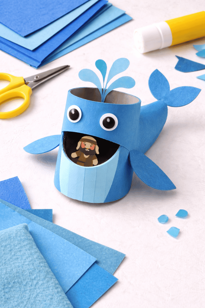 - Celebrate imperfection. A lopsided whale with too much glitter is still a Jonah and the whale craft – and it’s made with love.