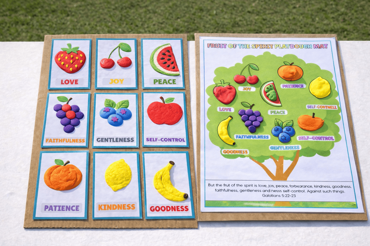 If you’d like to bring a little faith into your craft time, I also put together some Fruit of the Spirit playdough mat & cards. It’s a simple Christian activity that helps kids reflect on love, kindness, and patience while they play.