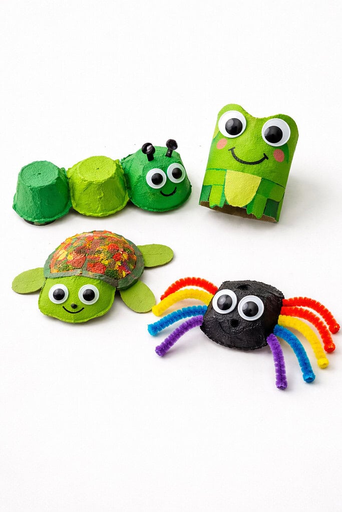 Those cardboard egg cartons are basically pre-made craft kits just waiting to happen. Cut the cups apart, add some paint, googly eyes, and pipe cleaners, and you’ve got a whole menagerie of animals — spiders, caterpillars, turtles, frogs, you name it.