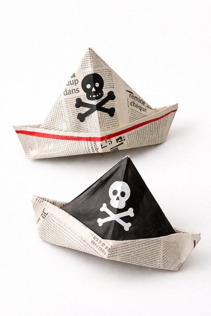 This classic paper folding craft is as fun to make as it is to wear. A single sheet of newspaper folds into a surprisingly sturdy pirate hat, which can then be painted black, adorned with a skull-and-crossbones, or decorated however your little pirate sees fit.